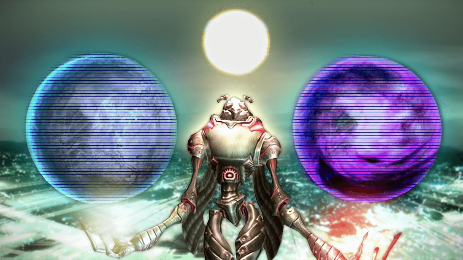 As if that wasn’t enough, a Leviathan sent from Phaaze suddenly appeared through a wormhole it created in nearby range and was on a collision course with Aether. The Luminoth didn’t have enough time to identify the object, and unbeknownst to them at the time, they fired a variety of their most powerful weapons at it but to no avail. They sought shelter and gathered as much supplies as possible, as the only choice they had left was to survive the unavoidable impact. Once the Leviathan struck Aether, the entire planet was almost entirely scorched or consumed by the oceans, apart from a few remaining areas where the Luminoth had stationed themselves. When it was safe to emerge from safety, not only did they notice a ravaged world, but Aether itself was unstable due to half of its energy disappearing, its location completely unknown.